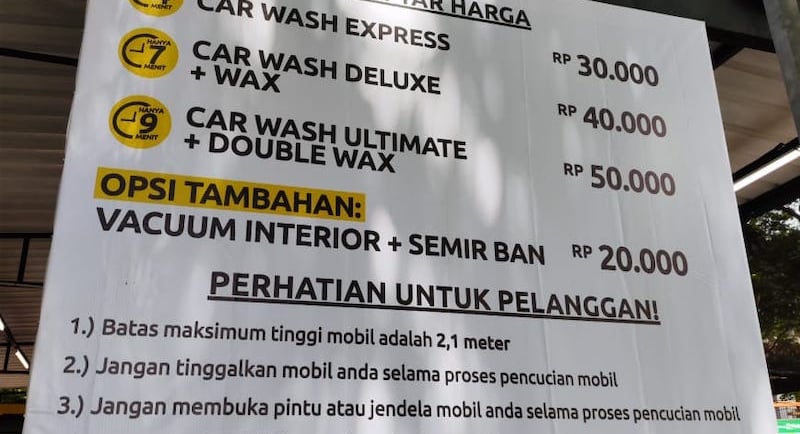 Lalu untuk proses cuci mobil dengan paket Car Wash Ultimate, dibutuhkan waktu sekitar sembilan menit sampai selesai karena mendapatkan treatment double wax.