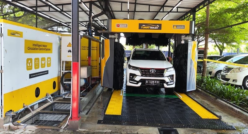 Kolaborasi dengan Turbo Wash menghadirkan mesin pencuci mobil otomatis pertama di Indonesia dengan keunggulan cuci cepat, irit air dan ramah lingkungan karena memiliki sistem air yang didaur ulang.