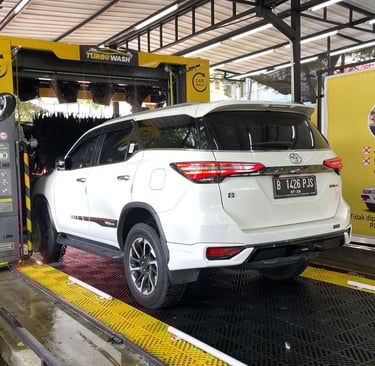 Proses pencucian mobil sepenuhnya menggunana mesin otomatis yang bekerja via robotik sehingga mobil cukup berhenti diam dan selebihnya proses cuci akan berlangsung menggunakan mesin.